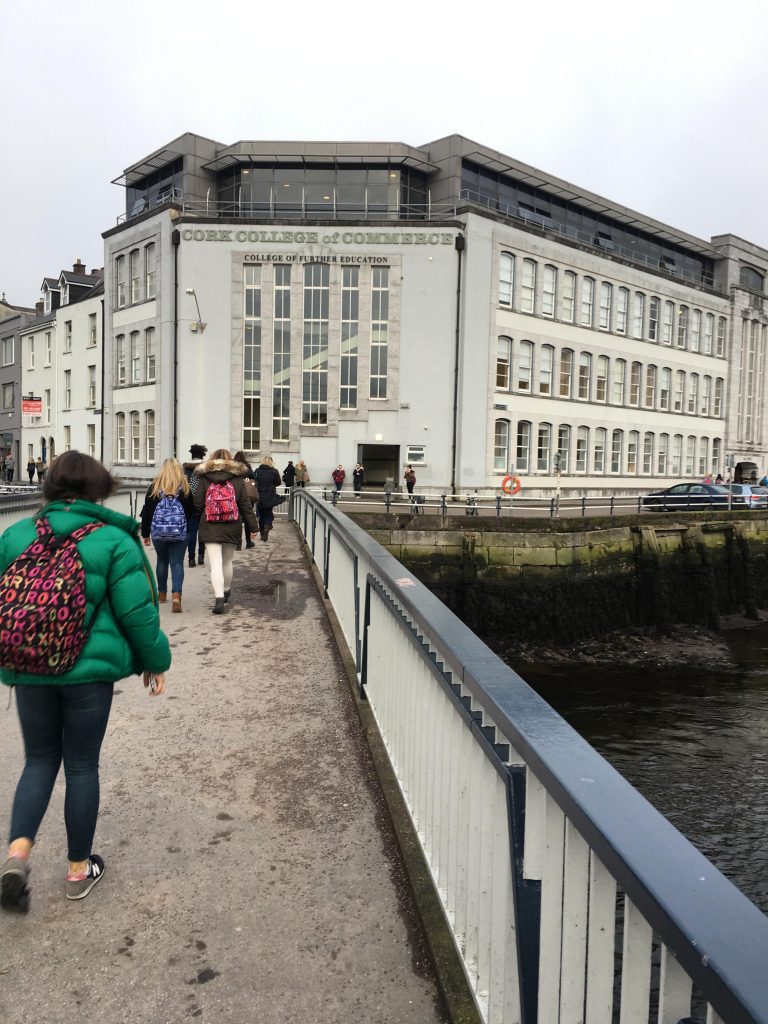 Y para muestra un botón. Esta imagen es de esta misma semana. Estudiantes dirigiéndose al Cork College os Commerce. Y como veréis, algunos se atreven a llevar los tobillos al aire. algo impensable en España en estas fechas.